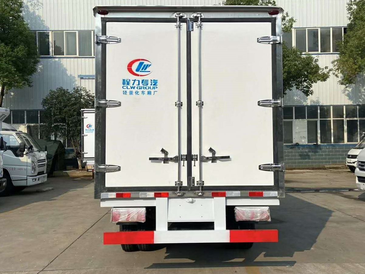 (2)廂板材質(zhì):內(nèi)外壁板選用國內(nèi)優(yōu)質(zhì)玻璃鋼(不吸光、隔熱性好、硬度強、抗氧化);中間保溫層為XPS擠塑聚笨板或聚氨酯;廂體厚度8CM。地板采用鋁花紋板,門邊條采用迷宮式橡膠密封條。