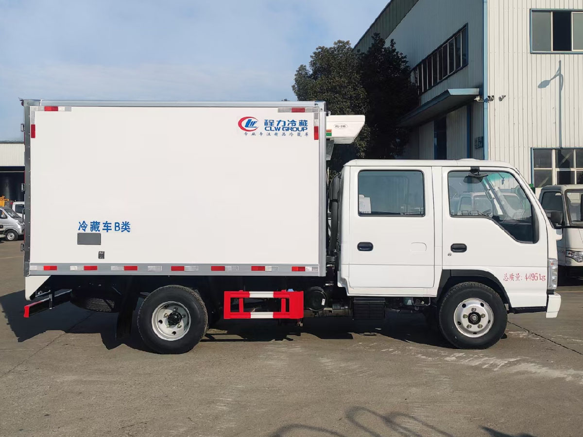 (2)廂板材質(zhì):內(nèi)外壁板選用國(guó)內(nèi)優(yōu)質(zhì)玻璃鋼(不吸光、隔熱性好、硬度強(qiáng)、抗氧化);中間保溫層為XPS擠塑聚笨板或聚氨酯;廂體厚度8CM。地板采用鋁花紋板,門(mén)邊條采用迷宮式橡膠密封條。