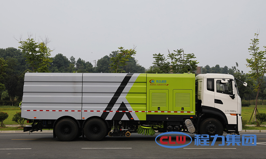 該車是采用東風天龍底盤改裝而成,集掃路車、灑水車和高壓清洗車功能于一體,具備路面清掃、路面洗刷、高壓清洗、低壓沖洗、路緣石洗刷、垃圾收集、污水回收、噴霧降塵和道路隔離墻清洗、小廣告清洗等多種作業功能。具有先進的智能化一鍵控制技術,全部作業均在駕駛室內完成,作業時,只需選定作業模式后,各作業機構的啟動與關停由程序自動控制。有“全洗掃”、“左洗掃”、“右洗掃”、“全掃”、“左掃”和“右掃”、“全洗”、“左洗”和“右洗”9種作業模式可供選擇。